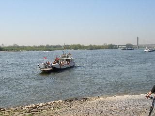 Personen und Fahrrad Fähre bei Rees